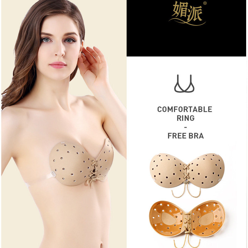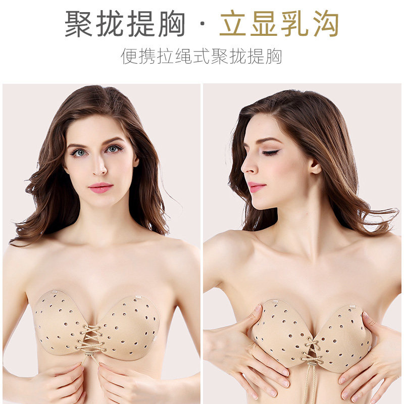 Mei's big chest underwear without steel ring thin sexy invisible shoulder-free strap, large size breathable beauty back gathering chest paste
