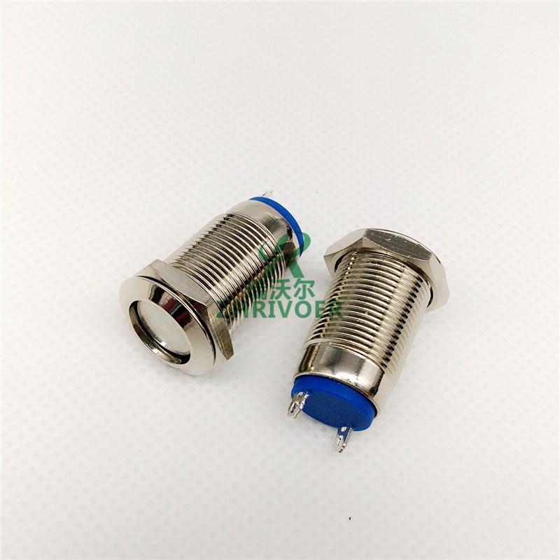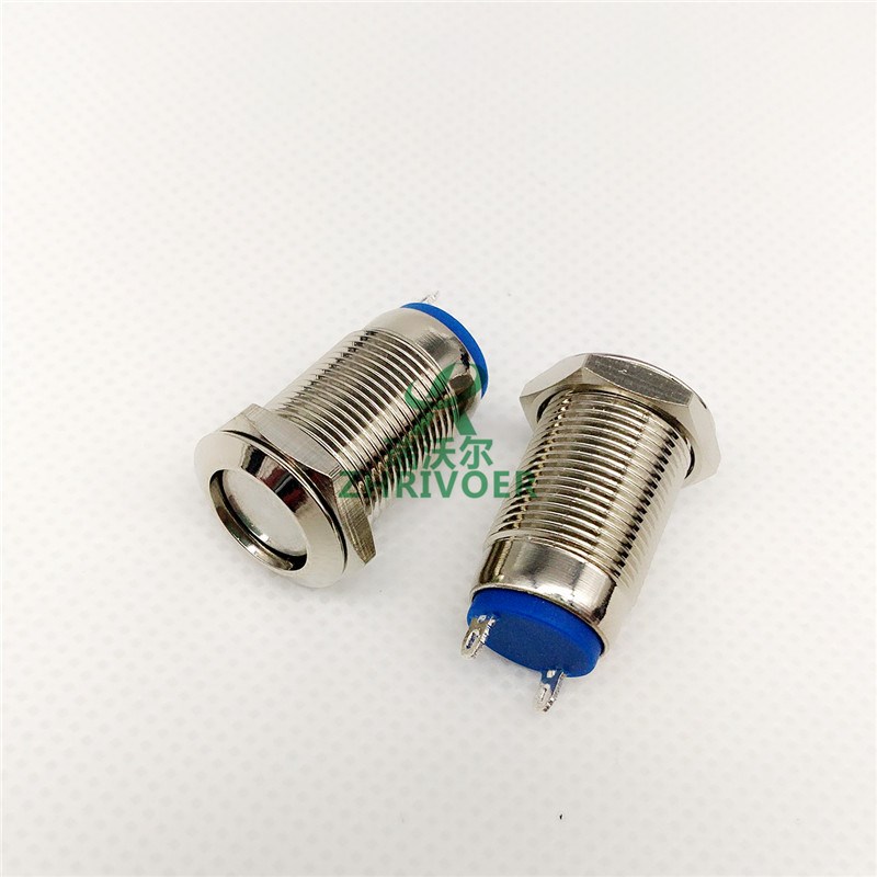 Thread extension self-locking 12mm metal button switch splash-proof 1 normally open flat head no light 2 feet