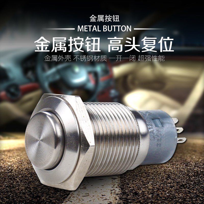 Stainless steel 16mm metal button switch splash nod automatically reset 3 foot silver contacts 1 open 1 closed