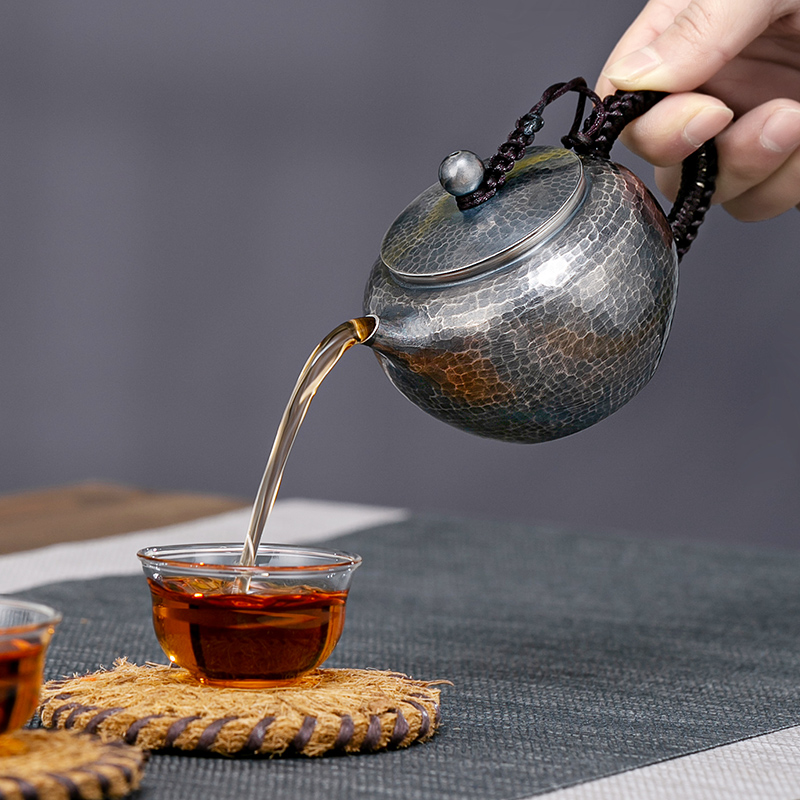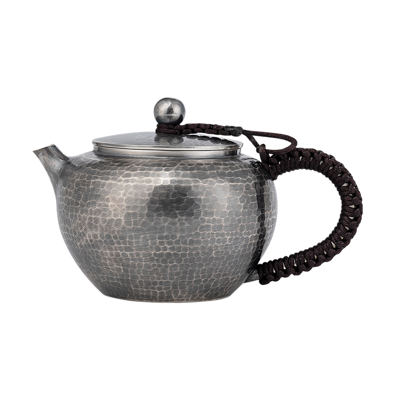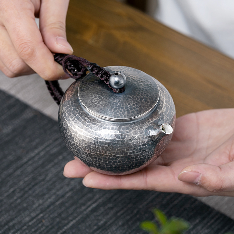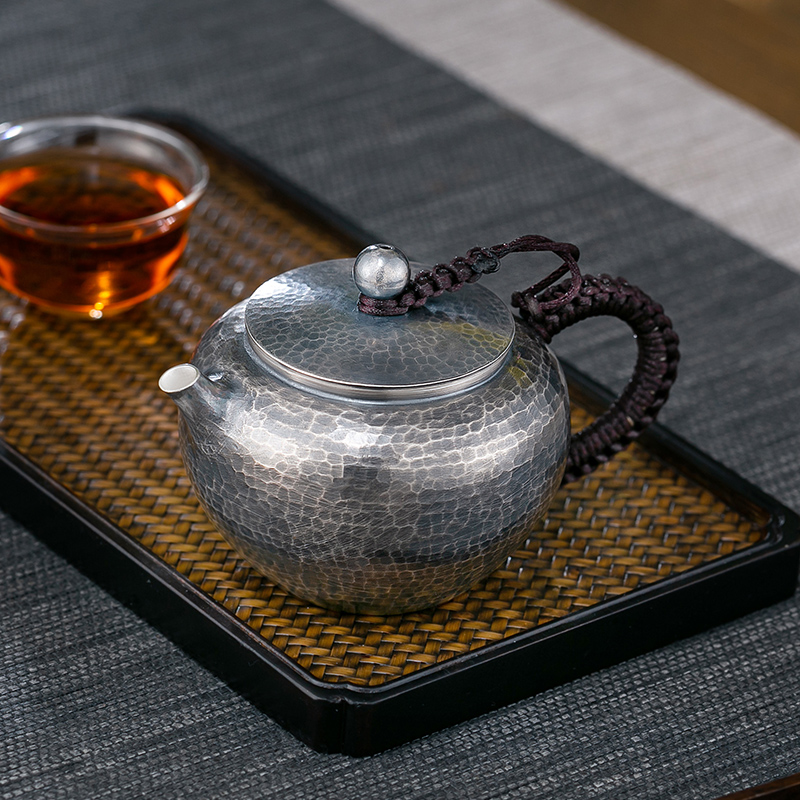 Pure handmade silver pot foot silver 999 hammer pattern old bead bubble teapot Yunnan kung fu tea set small teapot Xi shi pot
