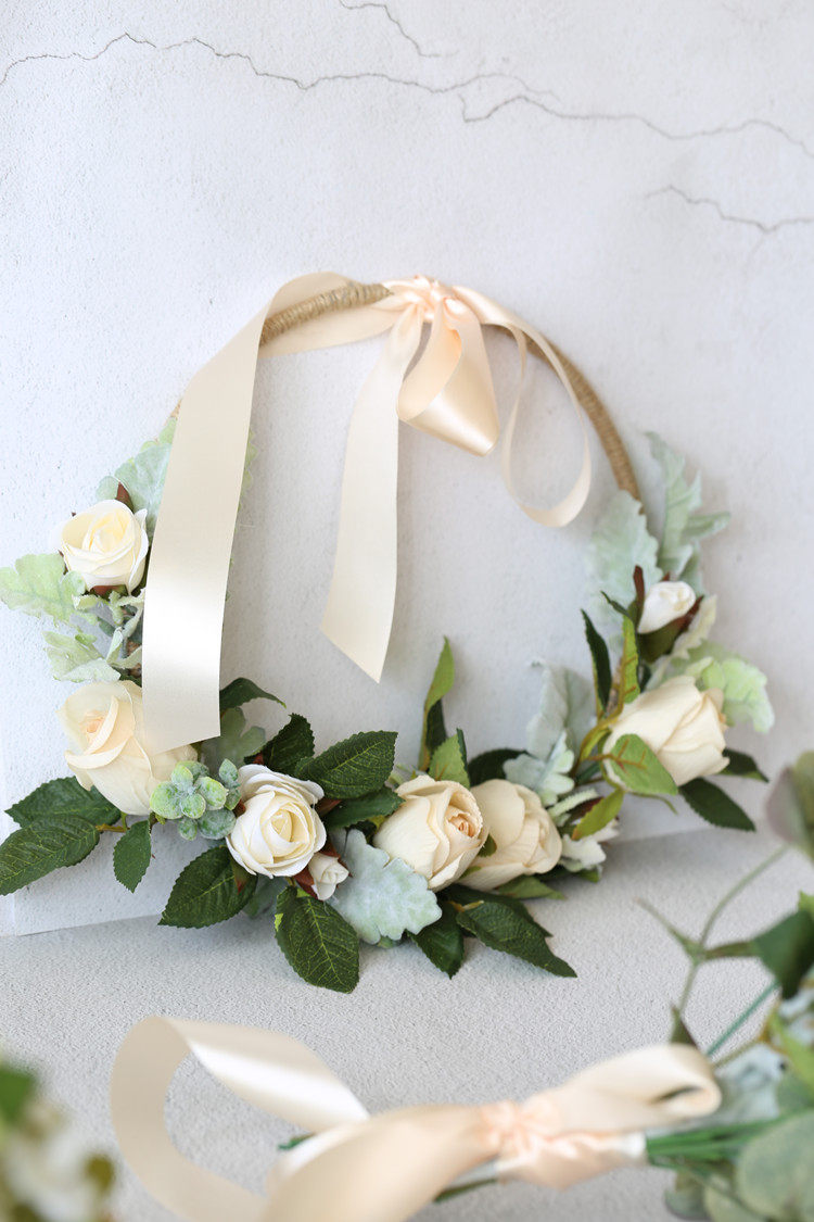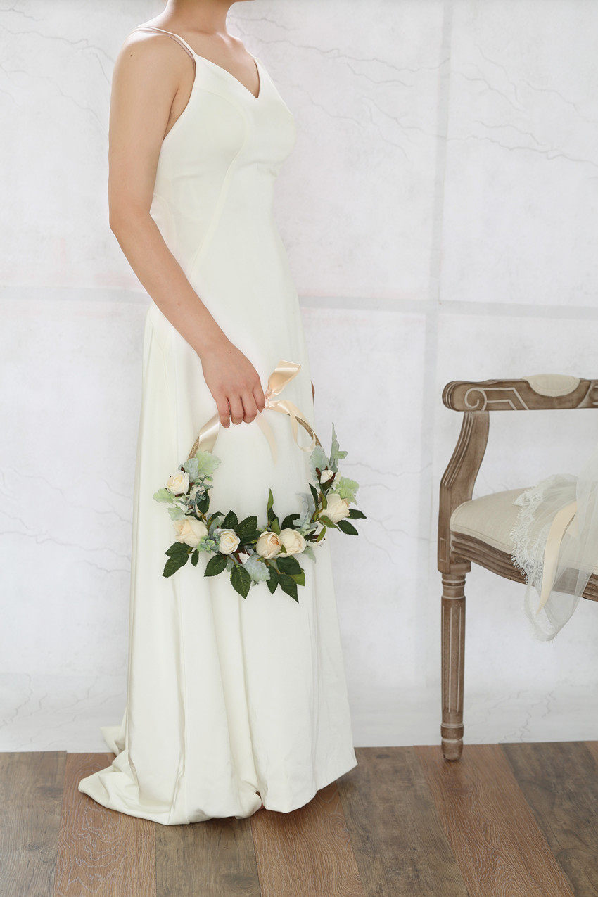 Ivory White Rose Extreme idea Vivian Design hands with flower basket flower ring round decorated door lintel wedding arrangement
