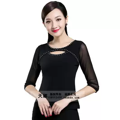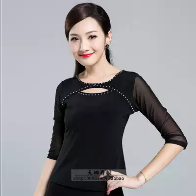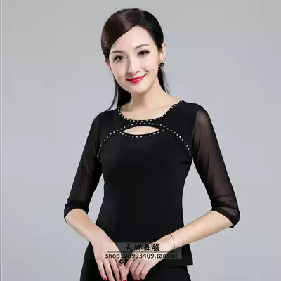 Tina dance Latin dance jacket female adult new black mid-sleeve dance practice performance costume modern dance practice uniform
