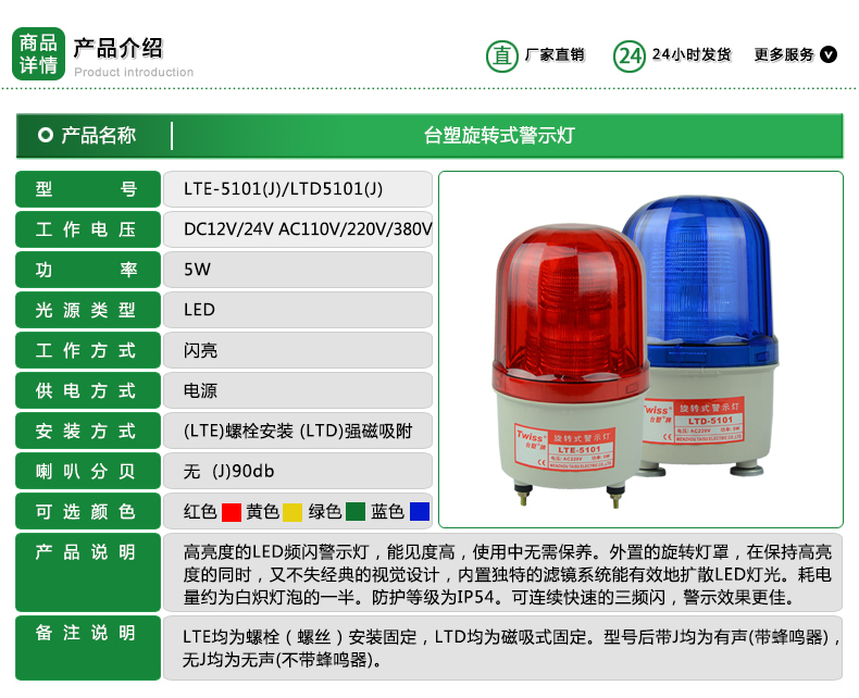 Formosa Plastics LTD-5101J Magnetic Acoustic Alarm Audible 12V24v220V380v warning lights LED stroboscopic lights