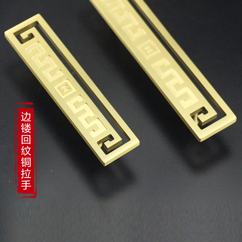 New Chinese pure copper side engraved back grain handle custom wardrobe imitation antique bath room cabinet door handle red wood furniture pull handle