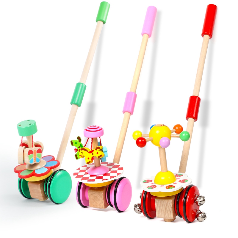Baby Kids Wooden Push Tui Le 0 Baby 1 Single Pole Toddler 2 Year Old 3 Baby Walking Small Plane Toy