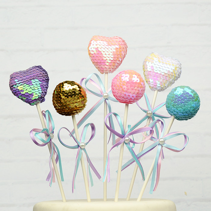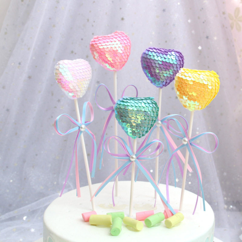 Bright Sheet Ball Cake Decoration Pearl Bow Tie Loving Bright Slices Ball Cake Decoration Inserted with Sweet Terrace Decoration