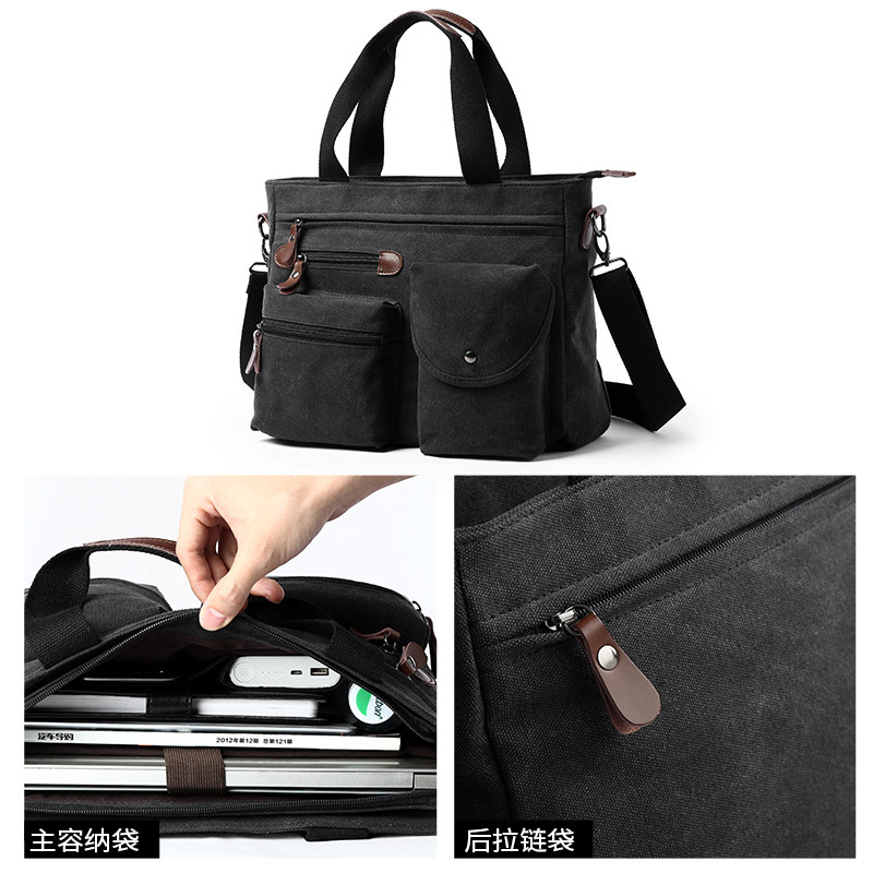 Portable briefcase men's business commuting shoulder messenger bag trendy canvas men's difference bag work computer bag