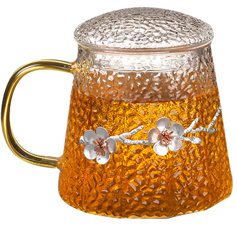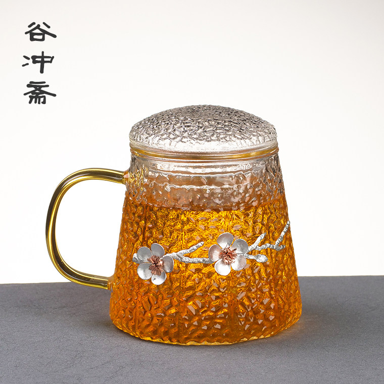 Plume hammer tattered glass tea cup men and women's office belts to separate the flower tea cup tea water separation filter tea cup home water glass