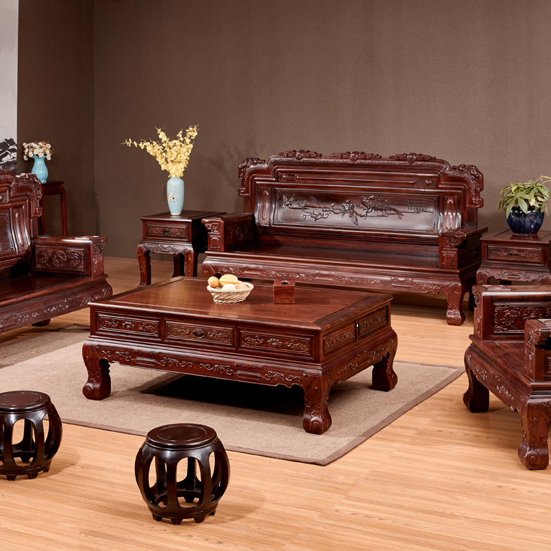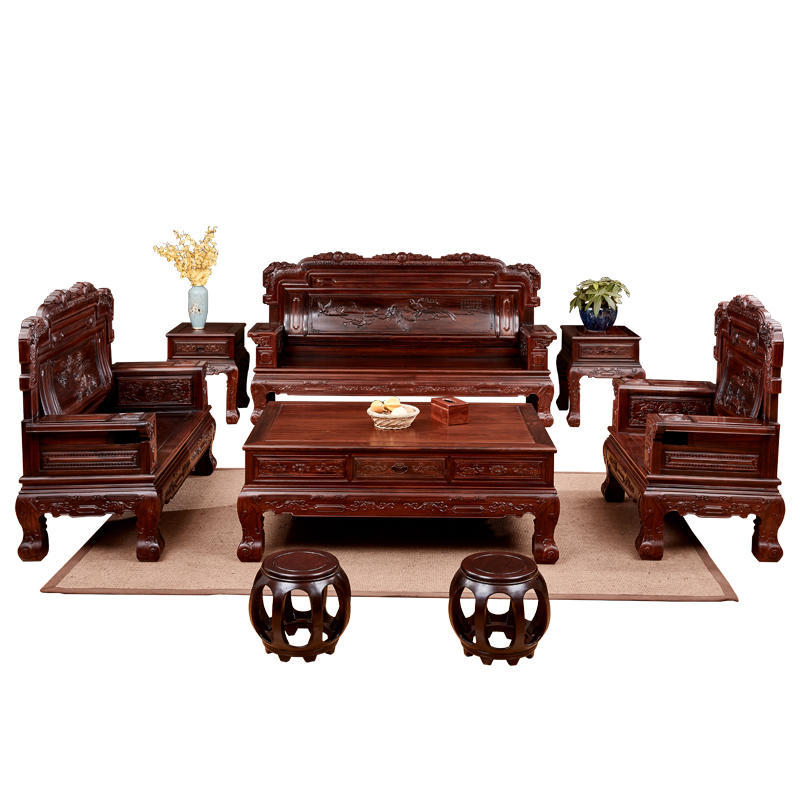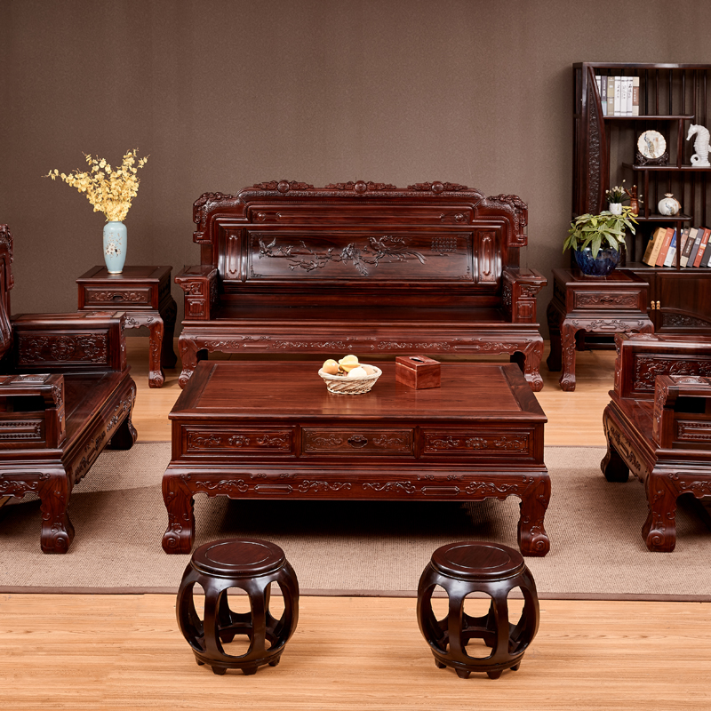 Chinese Red Wood Sofa Combined Log Classical harmonious solid wood Living room Luxury furniture East African Acid Branches Wood Treasure Seat
