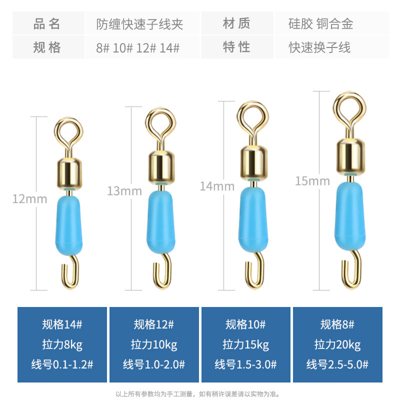 Biding fish table fishing silicone quick sub-wire clamp anti-winding opening 8-eight-word ring connector table fishing line group accessories
