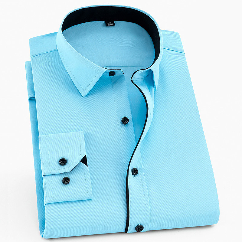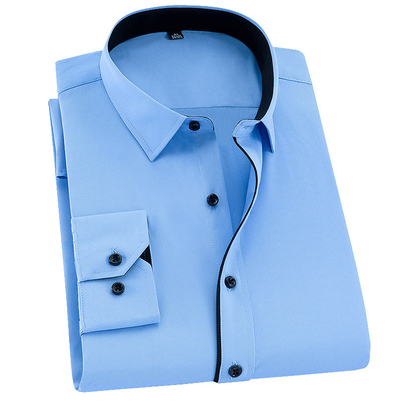 Long-sleeved shirt men's spring and autumn business casual workwear blue shirt autumn formal wear fashion free ironing suit inch shirt