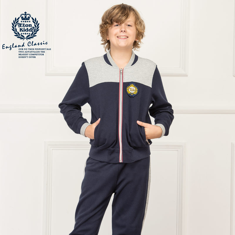 Eaton Guild primary and secondary school uniforms boys girls light grey hidden turquoise splicing color baseball uniform sports long pants spring and autumn