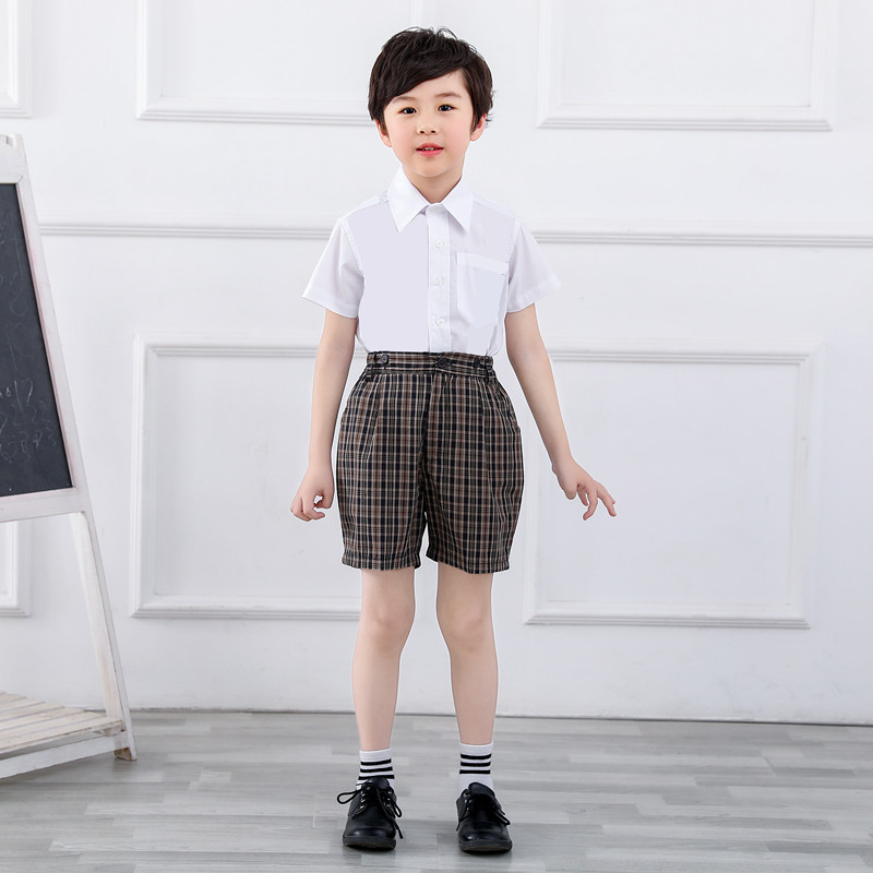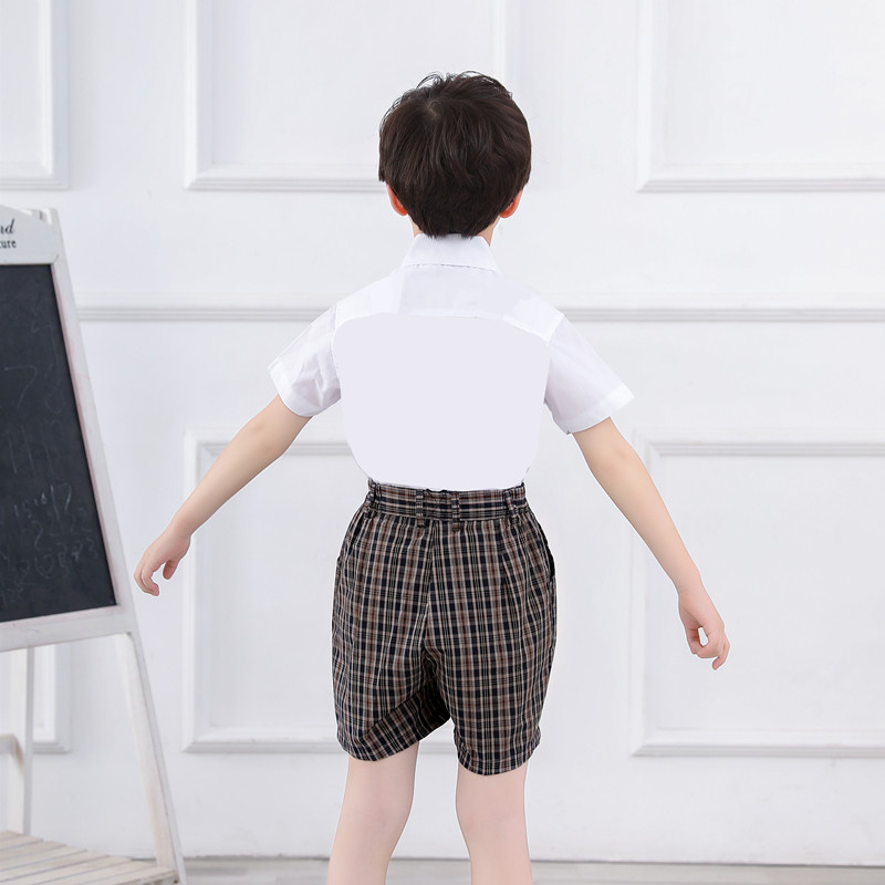 Shenzhen School Uniform Gown Elementary School Students Men's Clothing Spring Summer Uniform Holding Baby Bag Shorts Plaid Tuxedo Plaid Shorts