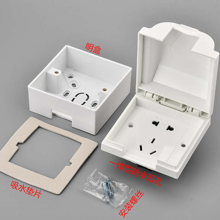 Surface socket waterproof box socket Bathroom eaves carport waterproof socket Outdoor surface waterproof five-hole socket
