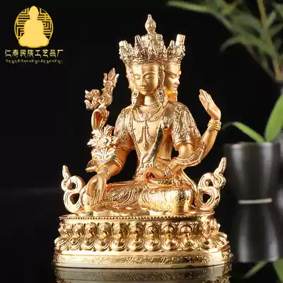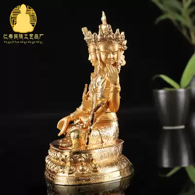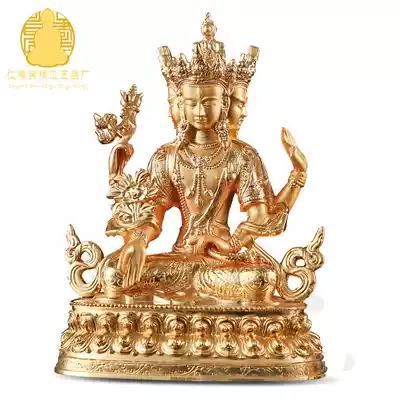 Tibetan Buddha statue tantric crafts decoration three-sided Guanyin alloy electric gold-plated non-empty Silk Guanyin