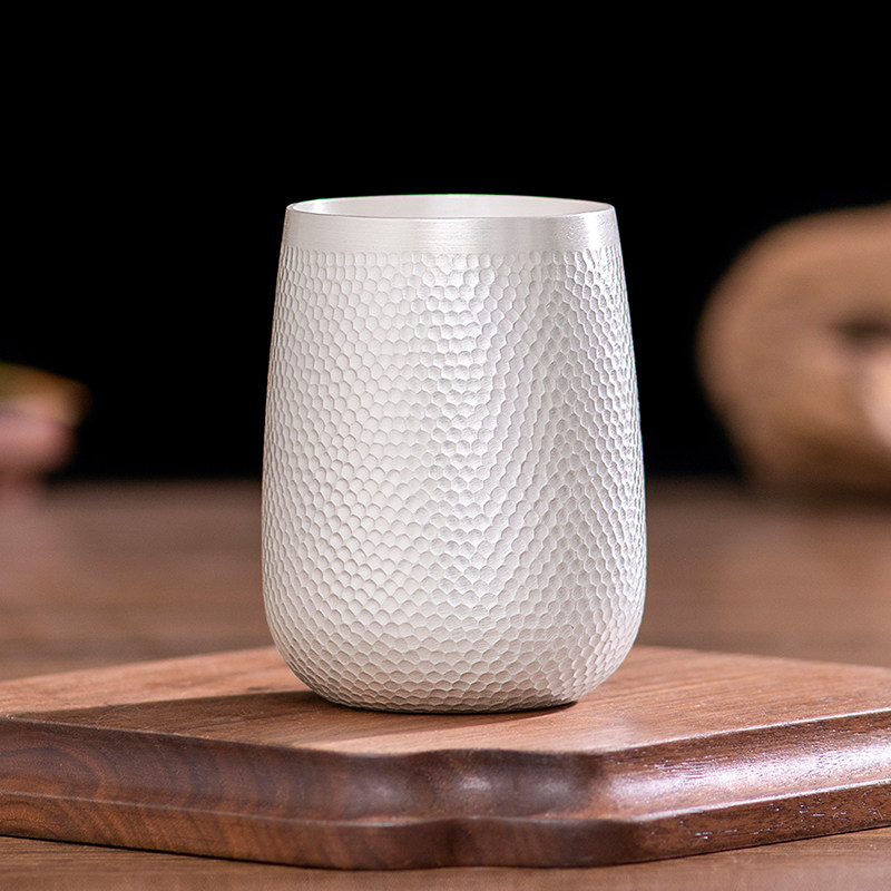 Sterling silver 999 handmade foot silver cup Large capacity water cup Household silver cup Sub-tea set Master cup Silver cup Silver cup Silver cup