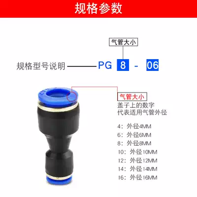 Pneumatic quick plug quick gas pipe joint plastic straight change diameter full PG 16-12 10-8 6-4 large head