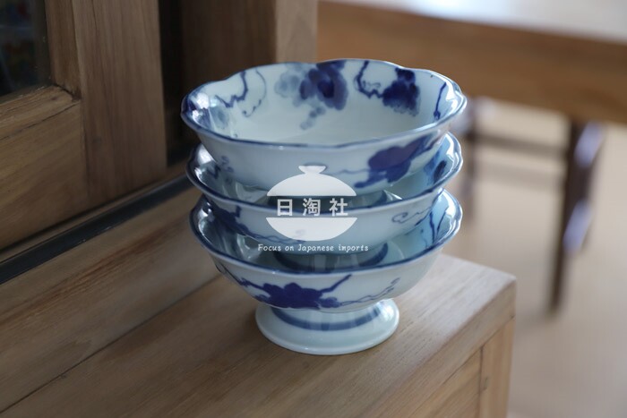 Japan imported mino burning printed rice bowl ceramic high bowl underglaze color dessert bowl soup bowl printing and dyeing process