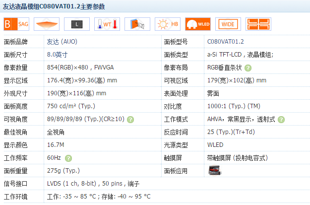 Original AUO8 0 inch C080VAT01 2