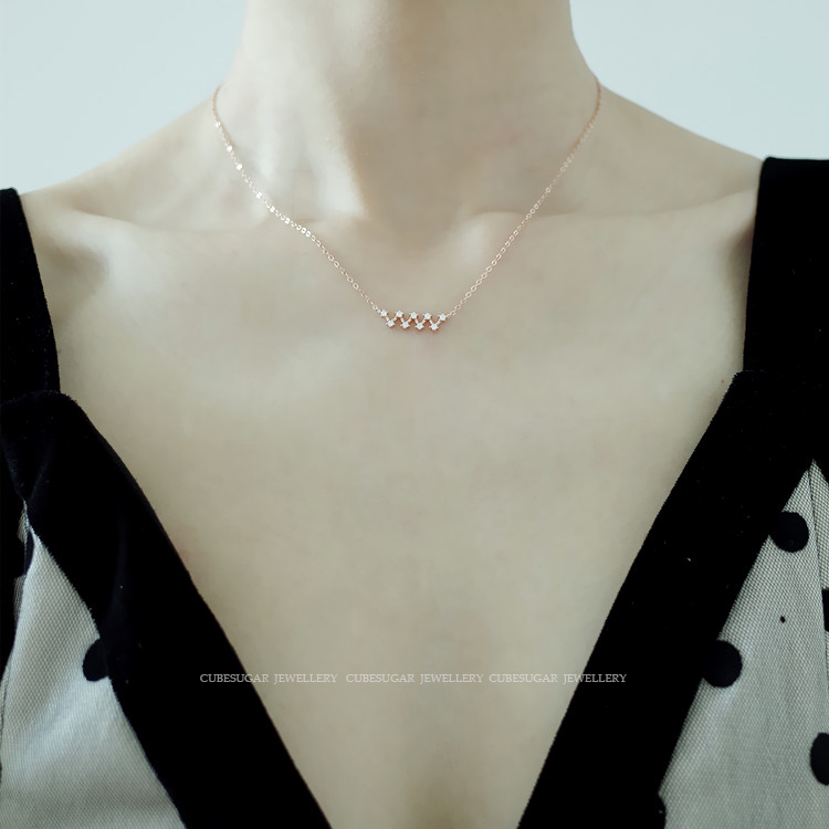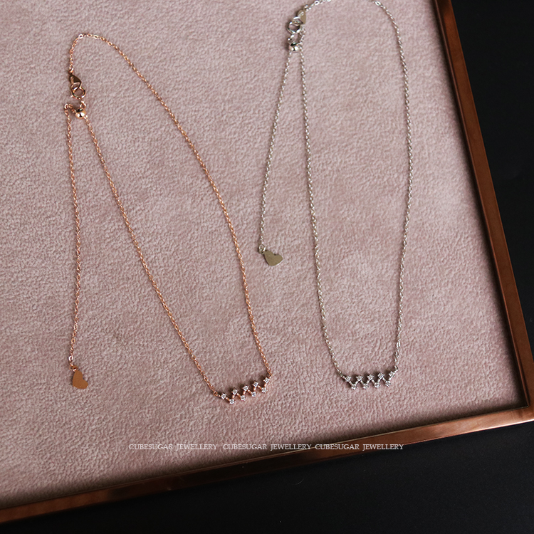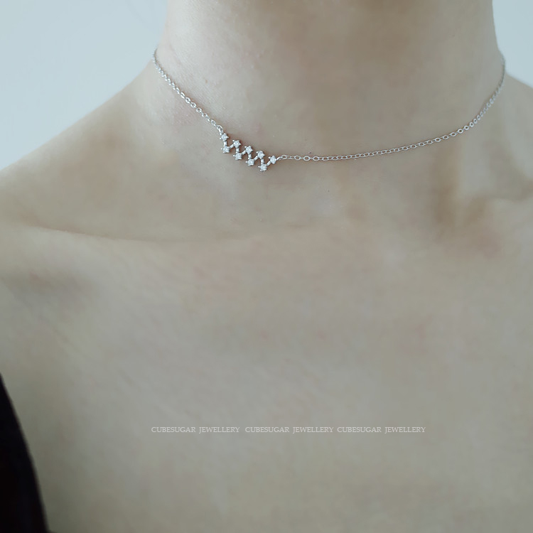 Custom 925 Sterling Silver Adjustable Length Wave Delicate Diamond Necklace Clavicle Chain Necklace