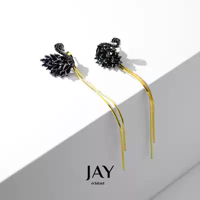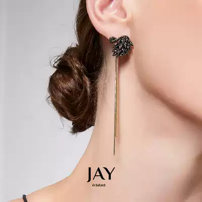 Suitable for summer tassel earrings female long version earrings 2021 new black swan earrings high-end light luxury