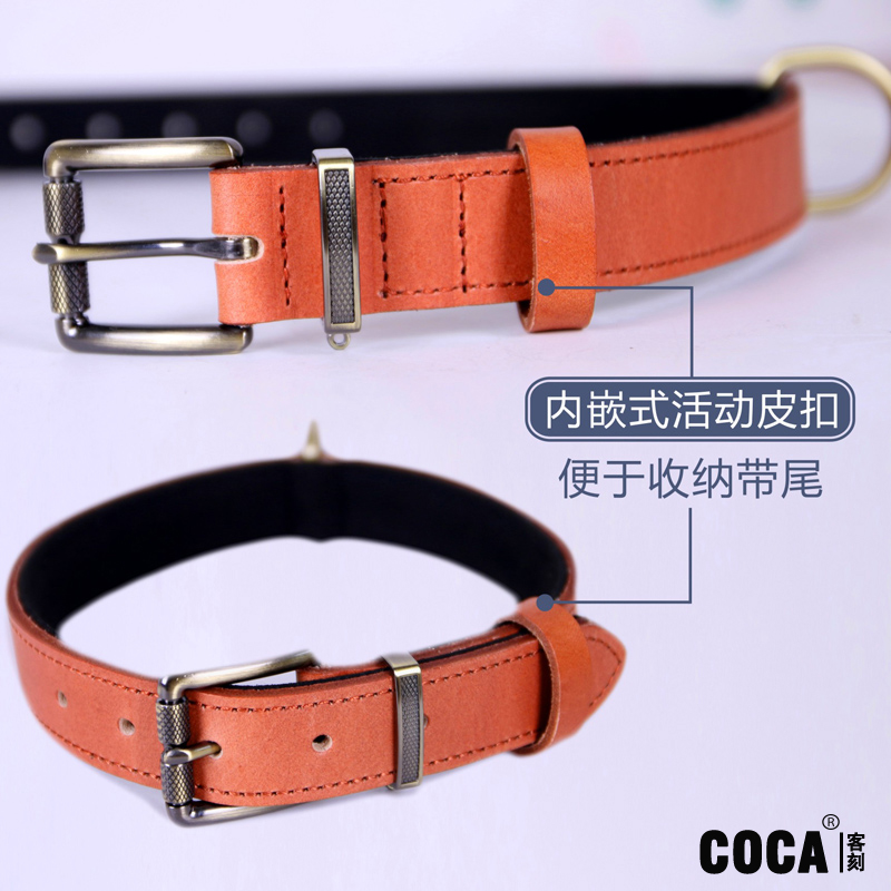 Dog collar genuine leather first layer cowhide pet neck collar large dog medium dog small dog collar dog collar dog golden retriever