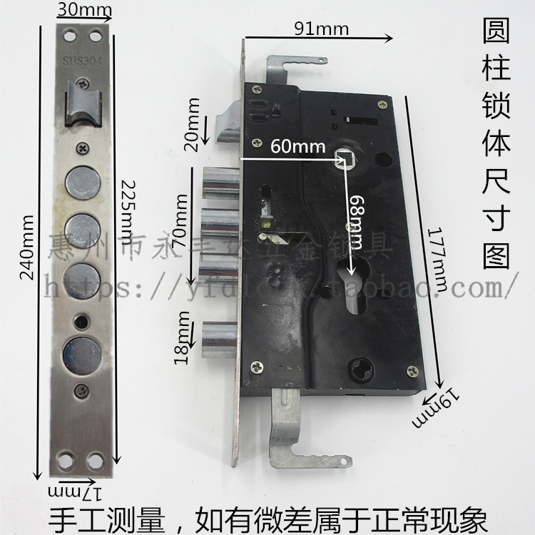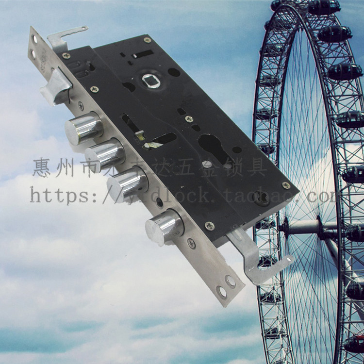 Affordable stainless steel door cylindrical lock body anti-lock tongue armored door and ground hook round the three tongue standard universal