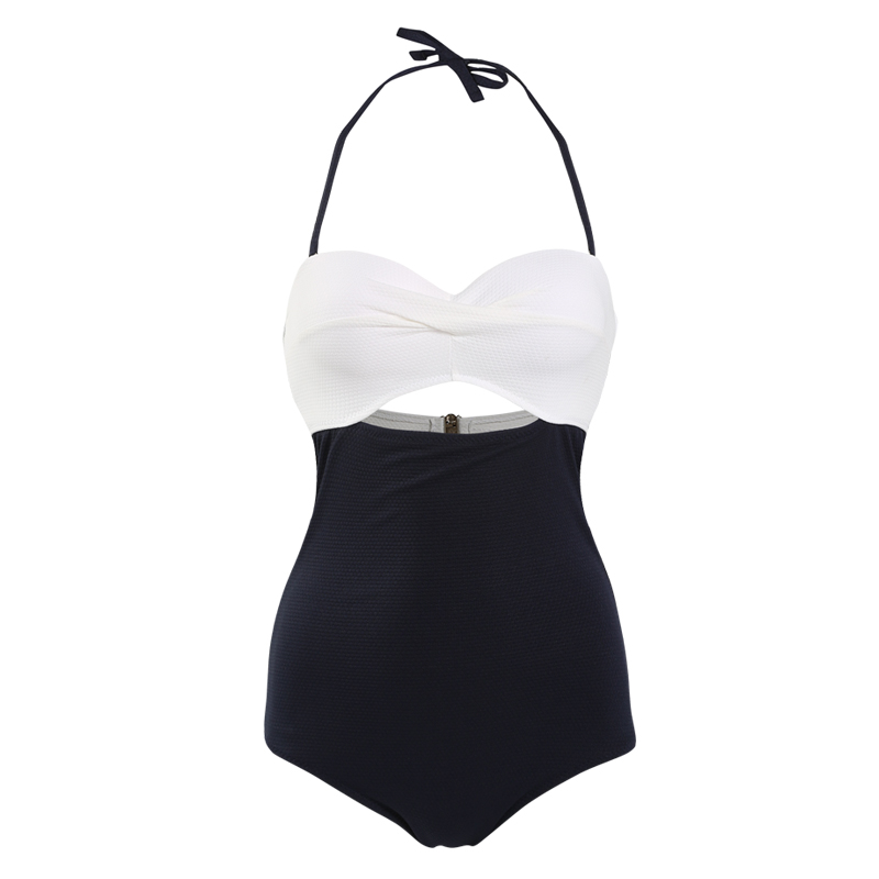 South Korea ins net red swimsuit one-piece conservative contrast color thin cover belly small chest gathered sexy vacation swimsuit woman