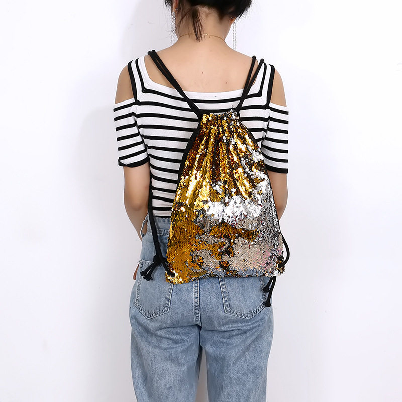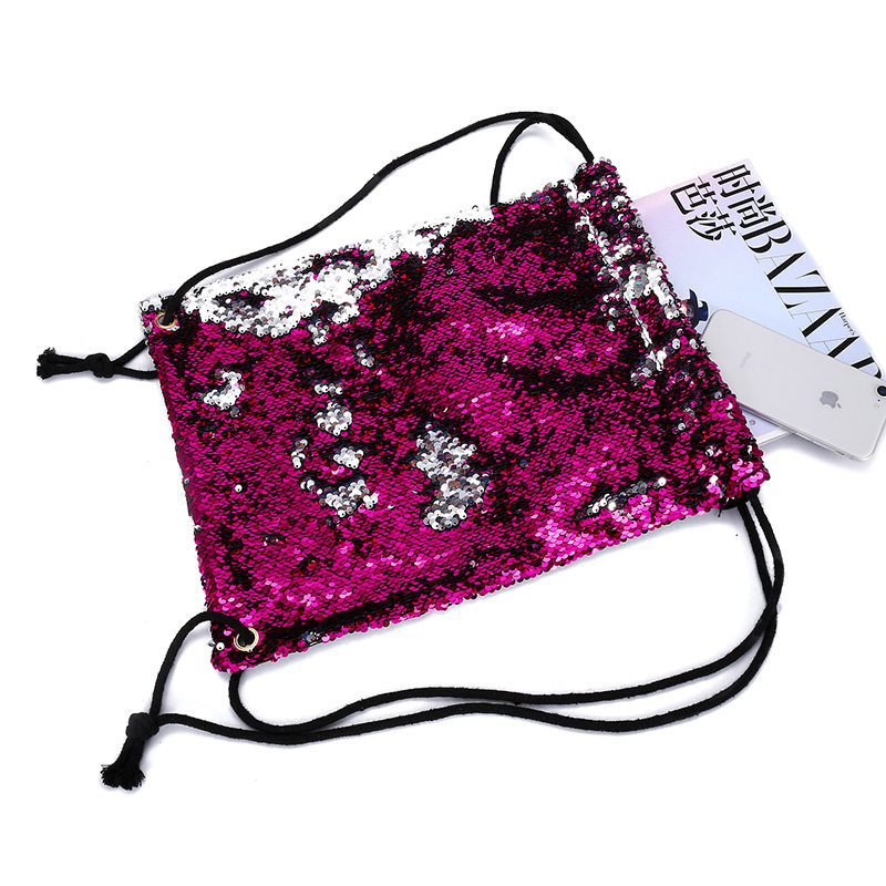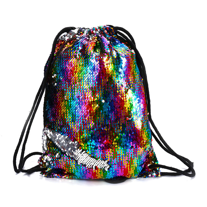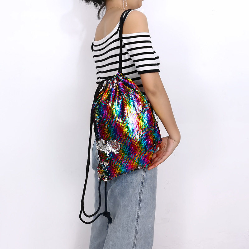 New student beam mouth backpack mermaid flip sequins drawstring beam mouth bag student sequin schoolbag backpack