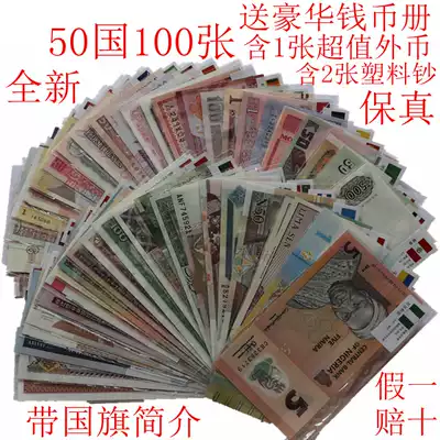 Brand new 50 countries 100 foreign banknotes Real coins with national flags and coin books Asia Europe America