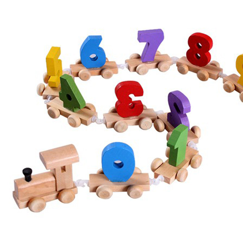 Digital small train environmentally friendly wood wooden children Early education Puzzle Hauler Toy Building Blocks Teaching Digital small partners