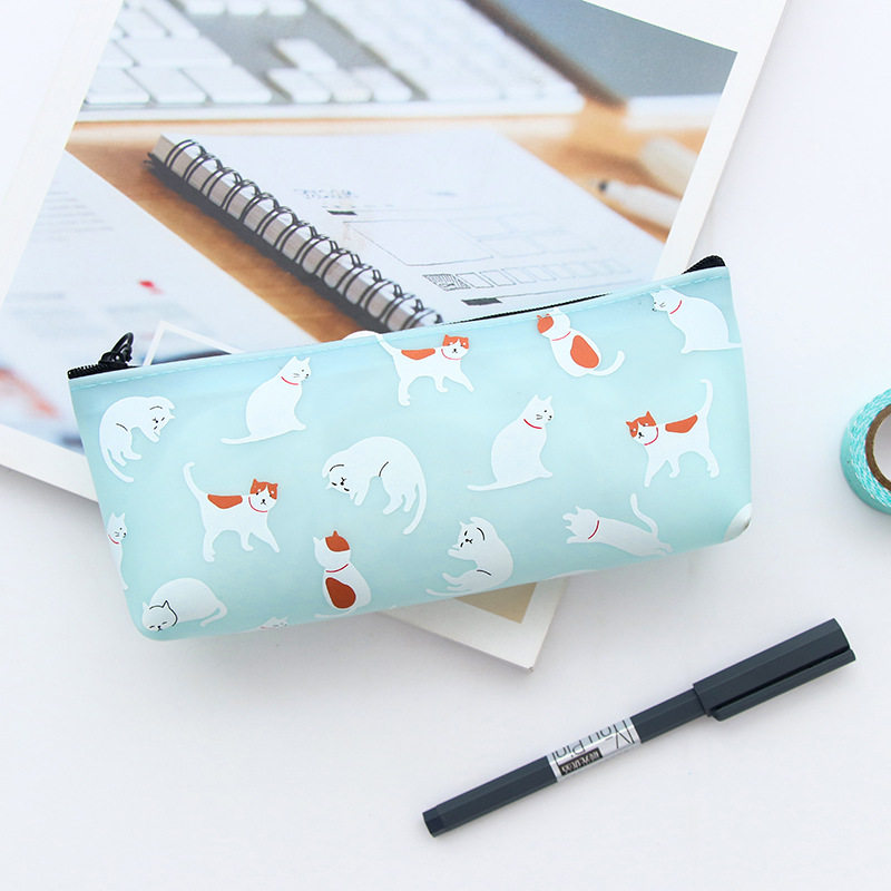 Korean blue kitten pen bag female minimal fresh large capacity student cute pencil box stationery bag