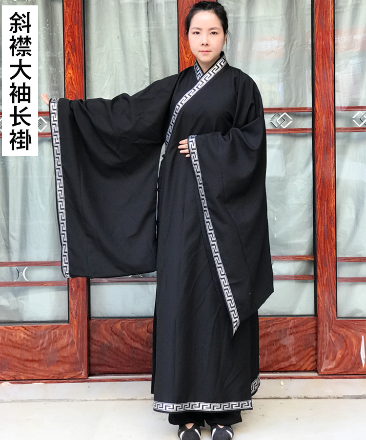 Morning dew Tai Chi Clothing Linen Long clothing Qiandao Kundau Costume Tai Chi Road Gown Clothes Long Shirts Inlaid the Great Wall Flower Side