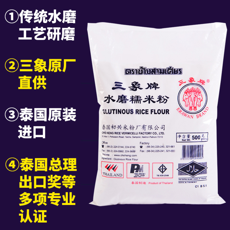 Three-elephant glutinous rice flour 500 gr 3 elephant glutinous rice flour 500 gr 2 packs of three-elephant glutinous rice flour 500 gr * 5 packs