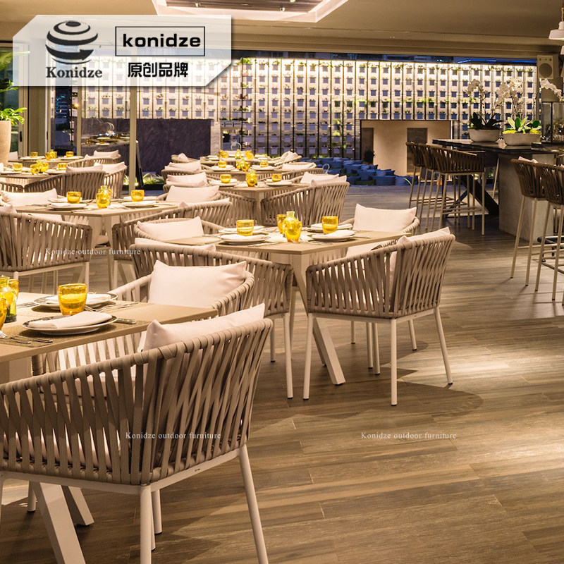 Outdoor open-air balcony rattan chair bar cafe indoor simple modern courtyard garden dining table and chair combination