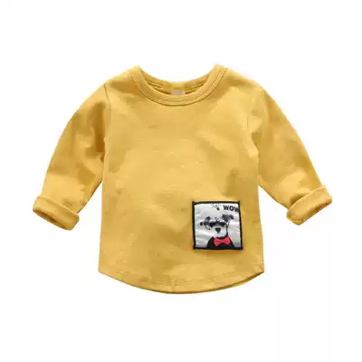 Baby T-shirt male 0 a 1-3 years old 2 baby spring and autumn cotton long-sleeved clothes Western school boys white top female children