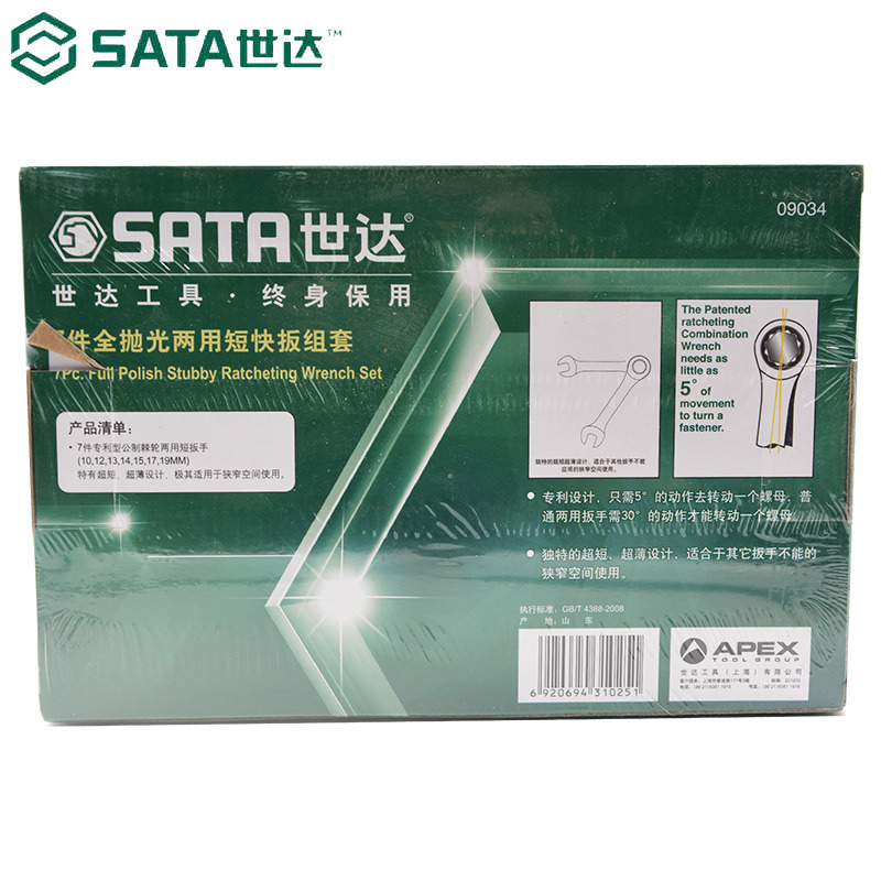 Seda tool 7 pieces fully polished Dual-purpose short quick pull set Petrol Repair Double-purpose ratchet Short wrench suit 09034