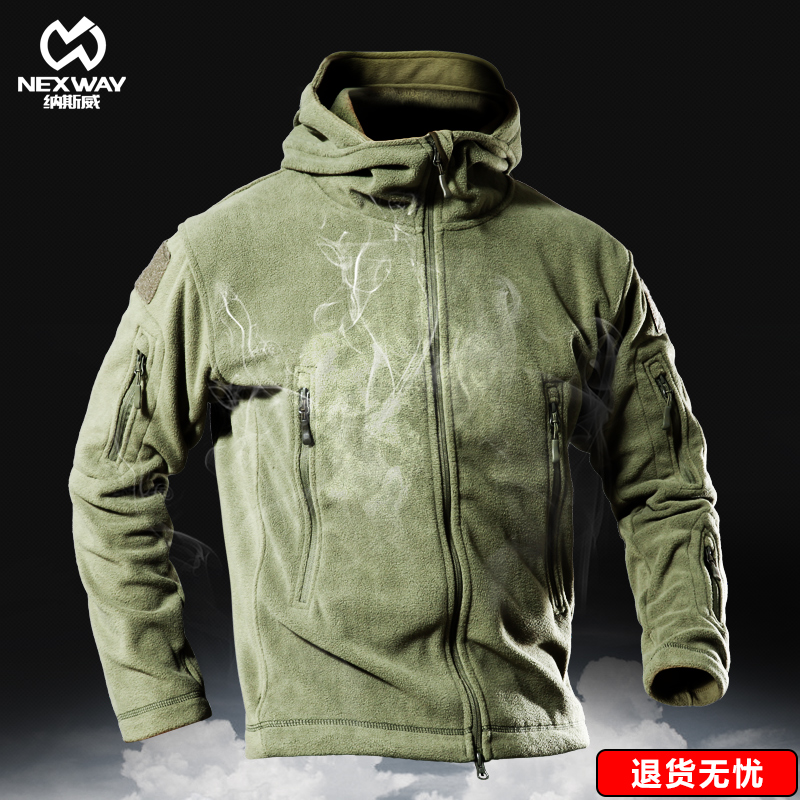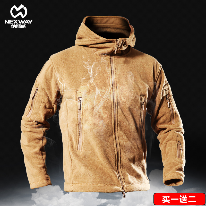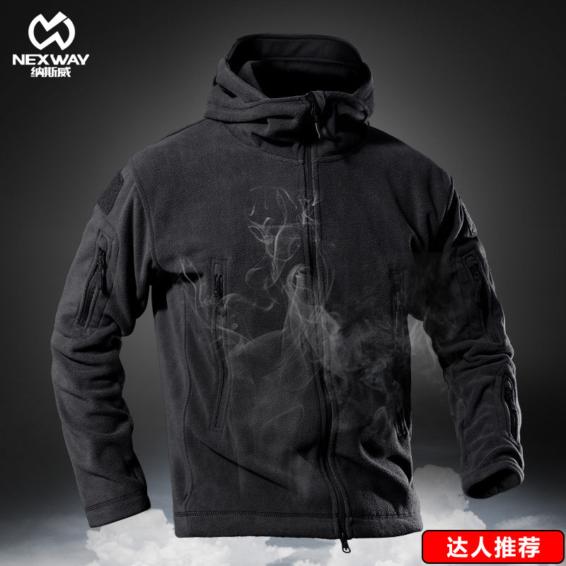 Outdoor fleece men's and women's sweaters winter cardigan double-sided velvet thick fleece tactical jacket assault jacket inner liner