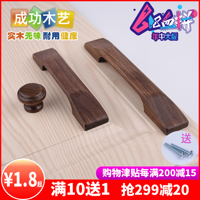 Black walnut handle black walnut color integral cabinet wardrobe drawer cabinet door wooden handle new Chinese furniture accessories