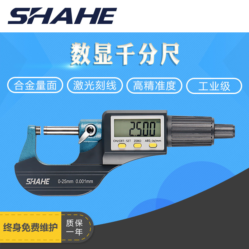 SHAHE three-digit digital micrometer 0-25mm 0 001 electronic digital display outer diameter micrometer spiral micrometer