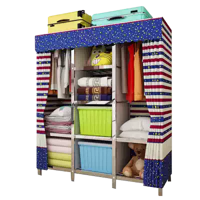 Simple wardrobe cloth wardrobe stainless steel steel frame wardrobe screw assembly folding steel pipe rental room bold and solid