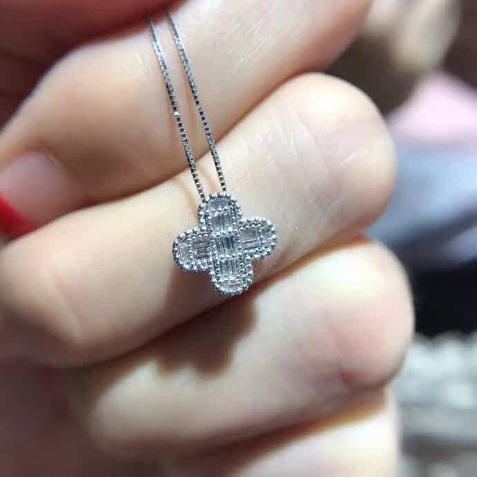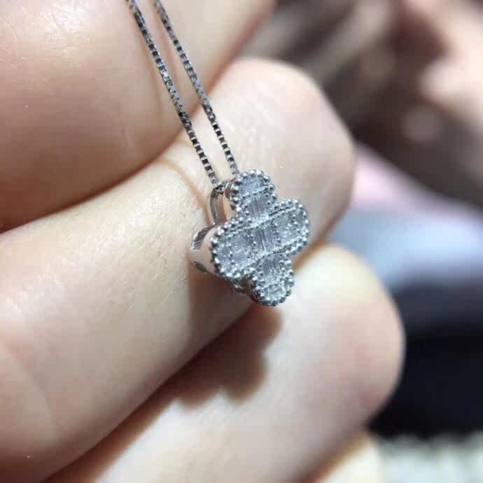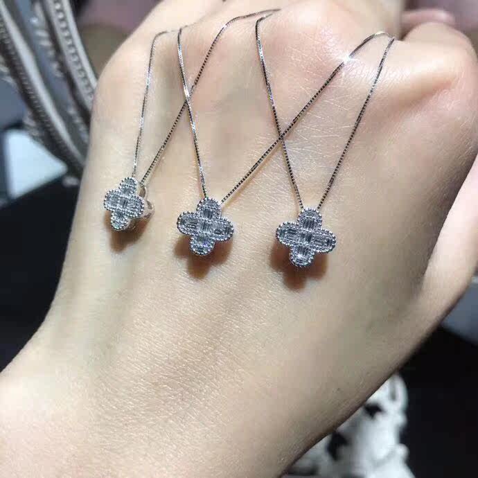 18K white gold four-leaf straw diamond necklace with female luxury group inlaid with diamond pendant with silver necklace