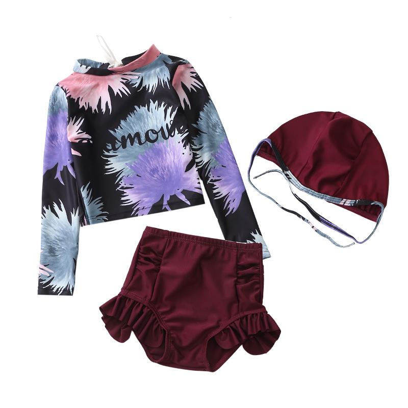 Red strip split to send female treasure swimsuit 1 piece of treasure swimming trunks 2 sky blue split to send female treasure swimsuit 1 piece of treasure swimming trunks 2 pink long-sleeved green bird pants to send female treasure clothing 1 piece of treasure pants 2 black flower long-sleeved to send female treasure swimming trunks