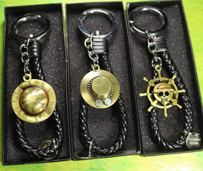 Pirate Hanghai to Wang animation peripheral straw hat Luffy Ace skull logo metal keychain pendant gift box