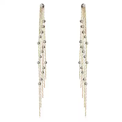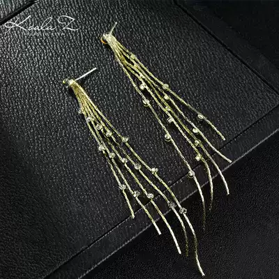 High-end gray earrings net red long version of multi-tassel gray diamond earrings female ear clip without pierced ears personality all-match South Korea