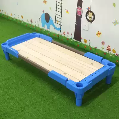 Factory wholesale kindergarten folding bed Baby lunch break nap children's plastic wooden bed custody small bed plus armrest