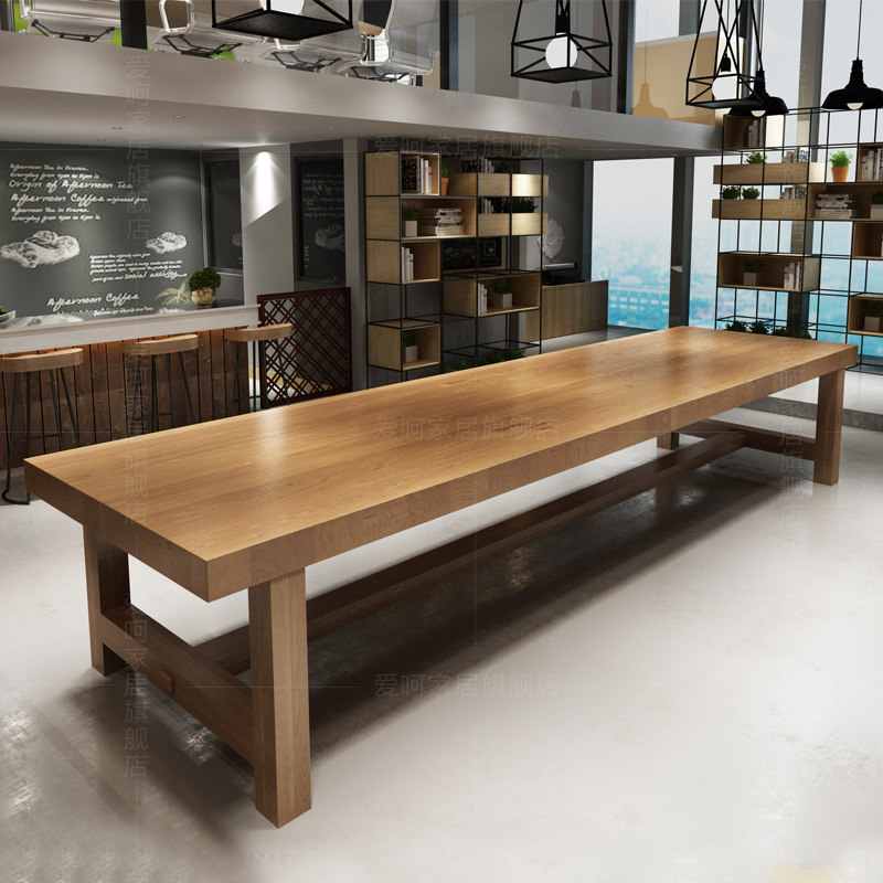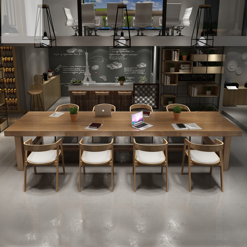 Nordic Solid Wood Meeting Table Long Table Industrial Wind Furniture Office Log Long Bar Table Large Negotiating Table And Chairs Combination-Taobao