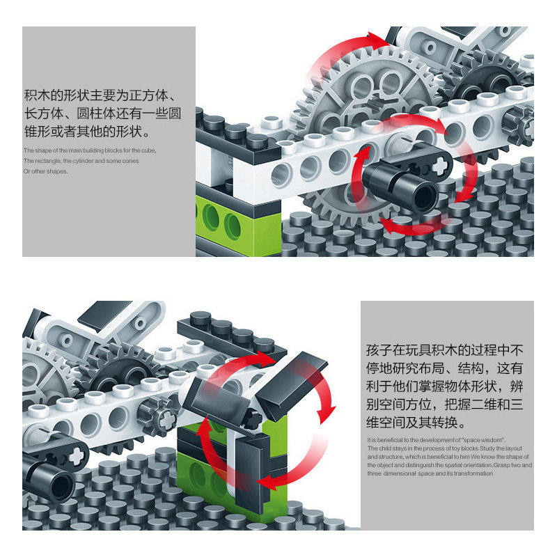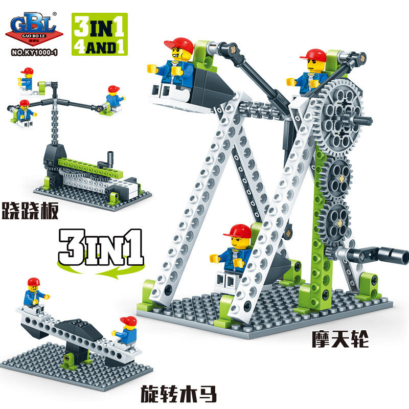 3 Hop 1 rotatable mechanical science building block skyscraper carousel gondola gondola hanging tower children STEM toys