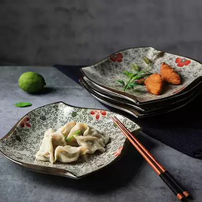 Japanese underglaze color ceramic irregular creative plate Household plate plate Special-shaped plate Steak plate Dinner plate personality