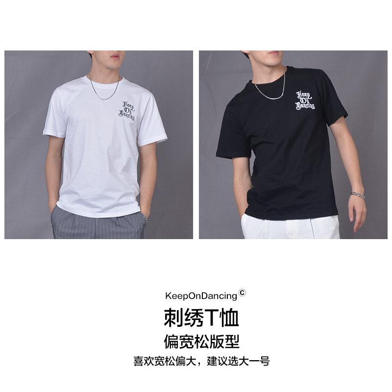 Personality T-shirt men's popping clothes hiphop tide brand bboy creative short-sleeved embroidery hip-hop text Europe station